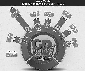 数据显示,今年1至11月平均,全国居民消费价格总水平比去年同期上涨2.6%。11月份,食品价格影响居民消费价格总水平同比上涨约1.92个百分点,与上月相比下降了0.19个百分点。其中,鲜菜价格上涨22.3%,与上月相比涨幅下降了9.2个百分点,影响居民消费价格总水平上涨约0.59个百分点;肉禽及其制品价格上涨5.5%,鲜果价格上涨10.6%,影响居民消费价格总水平上涨约0.20个百分点。