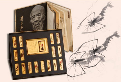 2014年是齐白石诞辰150周年,中国邮政推出了《中国珍邮:齐白石》纯金/纯银珍藏版,包含17枚源自《齐白石作品选》邮票的贵金属邮票、《齐白石》邮册一部以及齐白石名作高仿宣纸画一幅。