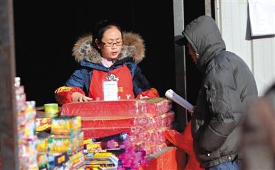 1月25日上午,位于工体东路的朝阳区熊猫烟花第二直营店开始向顾客销售马年烟花。新京报记者 王贵彬 摄