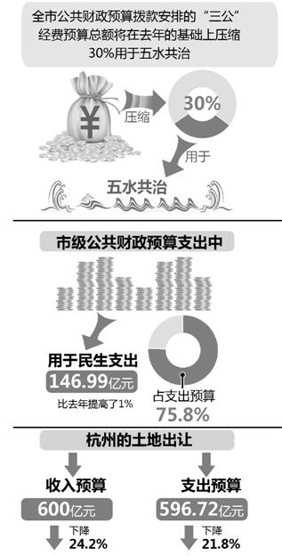 市财政局透露,今年杭州将降低“三公”经费,全市公共财政预算拨款安排的“三公”经费预算总额将在去年初预算的基础上压缩30%。省下来的钱,用来干嘛?答案是:全部用于“五水共治”。