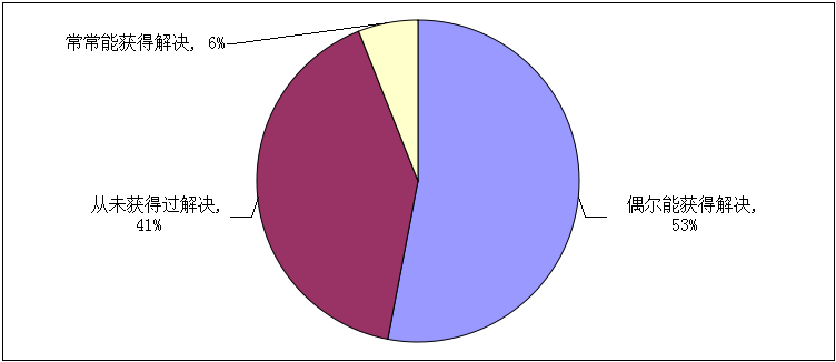 近年来,美容消费领域的纠纷呈现个案金额大、调解难、取证难等特征。本次调查显示,美容类投诉中,41%的参与调查者从未获得过解决;53%的参与调查者表示偶尔能获得解决;常常能获得解决的参与调查者只占6%。
