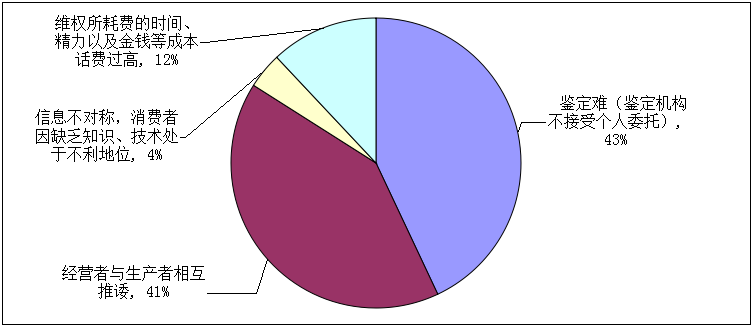 汽车消费者在维权过程中所遭遇的最大难题是鉴定难,具体表现在鉴定机构不接收个人委托方面,在参与汽车类调查人群中占比达到43%,几近半数。