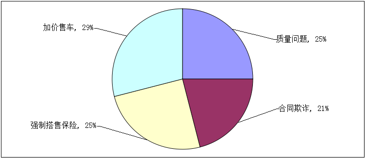 加价售车、合同欺诈和售后服务成为汽车消费投诉焦点。本次调查显示,在销售环节,29%的参与调查者遭受加价售车,遭受质量问题、强制搭售保险和合同欺诈的参与调查者分别为25%、25%和21%。