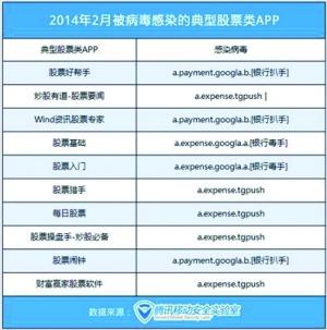 腾讯移动安全实验室监测,恶意扣费类病毒占比增加,金融网购类APP大量染毒。“银行扒手”、“银行毒手”、a.expense.tgpush三个病毒成为基金理财金融类APP的“终结者”。此外,还有“股票好帮手”、“股票闹钟”、“股票猎手”等42款股票类手机App也被病毒感染。