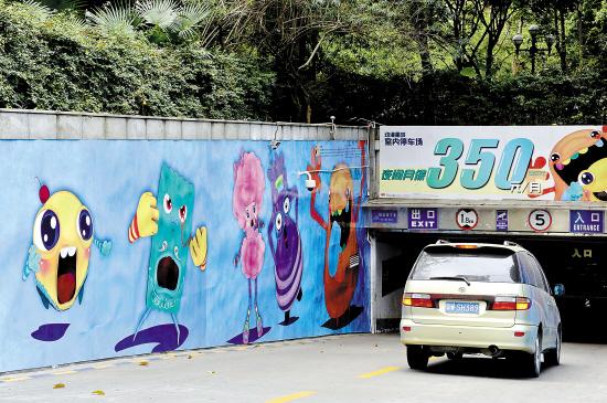 广州中山五路上的一个停车场,入口处标明夜间月保车辆收费350元 羊城晚报记者 宋金峪 摄