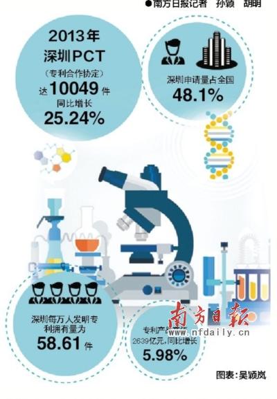 来自市市场监督管理局(知识产权局)的消息称,2013年,深圳PCT国际申请量相比2012年增长2025件,占全国PCT国际专利申请增长量的69.6%。2013年深圳PCT国际专利申请首次突破1万件,占国内企业和个人申请总量的48.1%,连续10年高居全国各大城市之首,且遥遥领先国内其他城市。
