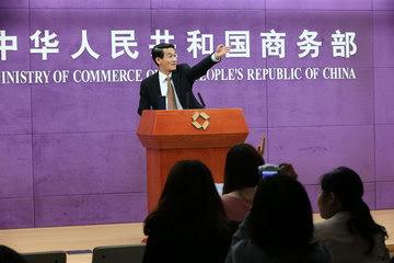 2014年4月17日上午,商务部召开例行新闻发布会就今年1季度我国商务运行情况进行通报,并答记者问。图为沈丹阳回答记者问。