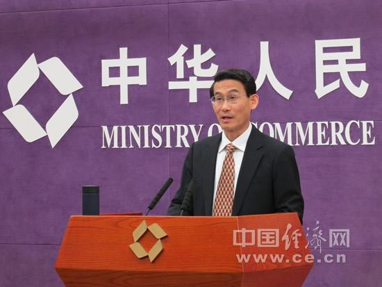 今天上午,商务部举行例行新闻发布会。图为新闻发言人沈丹阳 中国经济网记者周汇敬 摄