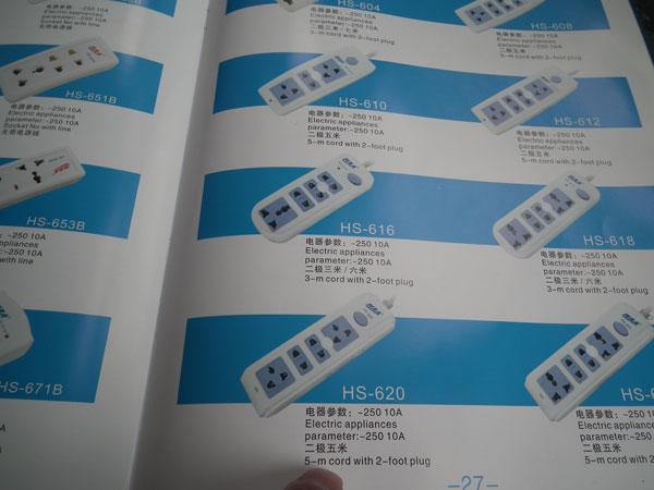 而有些企业的产品目录上标注的全是新国标插座,但其员工表示,也可以定做同样插位的万能孔插座,“驰伟”、“众诺”品牌的工作人员告诉记者,“国家不让生产万能孔插座,所以我们不敢在产品宣传目录上印。”