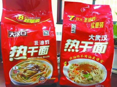 去年12月底,“大汉口”食品有限公司董事长刘海元发现我市一些超市里摆着与“大汉口”热干面非常相似的产品,“在货架上摆着一起卖,不仔细看,我自己都分不清。这完全是抄袭我们的品牌。”他说。