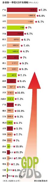 2014年是深化改革的开局之年,各地一季度经济数据也备受关注。截至昨日,29省份已公布了一季度GDP数据,其中27省份的GDP增幅不同程度低于去年同期的数据。目前,全国各地仅陕西与西藏两地尚未公布一季度GDP。27省份一季度GDP涨幅相比去年同期回落,经济增长下行压力增大。尽管如此,18个省份的GDP数据仍然高于全国一季度GDP的7.4%涨幅。新京报记者 李丹丹 实习生 于嘉怿 范小洁