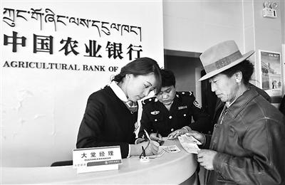 为助力农牧民增收致富,西藏近年来推出一系列小额信贷产品,目前小额信贷已覆盖西藏95%以上的农牧民家庭,远超过全国36%的平均水平。图为中国农业银行萨迦县支行工作人员在帮助当地村民填写相关信息。