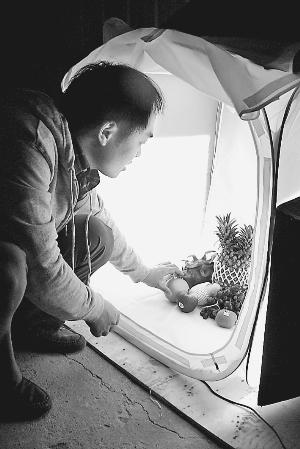 5月4日,李孝儒正在组合需要拍照的水果。
