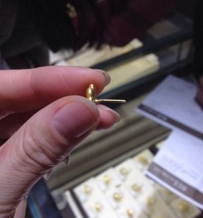 据山东网报道, 2014年初,青岛李女士花530元在青岛利群四方购物广场的一家专柜购买了一对硬金耳钉,但是佩戴了不到半个月,耳钉针就断了。李女士向潮宏基店员说明情况后,耳钉被返厂维修。