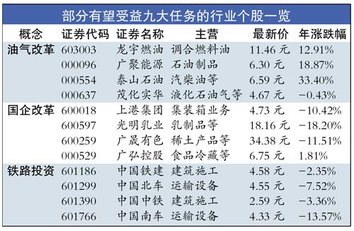 从股市投资来看,这九大任务中,可能会涉及到铁路投融资、资源价格、营改增试点、新型城镇化以及公共服务等领域。但资源价格改革利好正在遭遇价格下跌的冲击,即使出台刺激性改革措施,短期也难以改变资源类上市公司的基本面。“营改增总体上为企业减负,但一方面,涉及的面非常广,难以形成热点;另一方面,营改增中也有不少公司实际税负是增加的。因此,这个点炒作比较难。”深圳某基金首席策略分析师告诉记者。