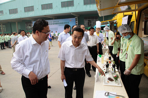 中新网6月23日电 22日上午,山东省暨济南市“食安山东”——食品生产加工示范企业创建仪式在欣和章丘工业园区启动。山东省食品药品监督管理局王建政副局长、济南市食品药品监督管理局孙法星局长、章丘市政府有关领导、企业代表和媒体记者共百余人参加了活动。