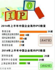 随着我国A股市场新股发行开闸及全球经济显现复苏势头,全球IPO活跃度及融资规模均大幅提升。2014年上半年,全球IPO数量为去年同期的2.23倍。从上市数量看,上半年中国企业在境内境外的上市情况表现较为平均,境内上市数量有小幅优势,然而融资规模依然是境外上市的企业较大。具体来看,境内方面,52家上市企业融资74.94亿美元;境外方面,上半年共有47家中企赴海外市场上市,上市数量同比上升2.62倍。47家中企融资额合计100.77亿美元,同比提高1.29倍。除了2013年下半年的爆发性增长,2014年上半年中企海外上市活跃度与融资规模相较于近几年,呈现明显增长态势。