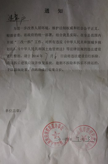 然而中新网财经频道采访双汇加盟店房东石良恩了解的情况并非如此。石良恩对中新网财经频道表示,村委会不让他租房给双汇加盟店的事是真的,村委会已经给他下了书面拆除通知,并跟他说,如果加盟店营业的话,7月6日就要拆他们家的房子。目前,双汇加盟店处于停业状态,没敢开门,所以他家的房子并没有拆。