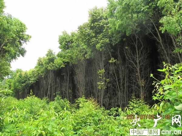 记者发现,景区内多年前中下桂花树、水杉树、峨眉白兰树等苗圃,由于长时间无人管理,因间距过密,树木盘根错节,长成一团,落叶满地。每个苗圃区,都立着一块铁牌,写有树木的品种和监督电话。这些铁牌多数已经生锈破损,上面的监督电话也已停用。