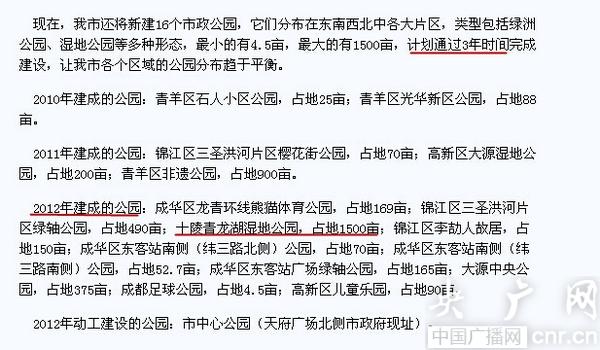 从市政公园,到体育公园,再到湿地公园,记者从成都市建委环城生态办了解到,十陵风景区的规划方案已经做了十几次。承建单位成都兴城投资集团有限公司一位负责人说,方案至今未定。