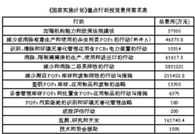 在此目标下,我国将实施7大重点工程项目,包括454个淘汰落后产能项目,110个二恶英减排工程项目,22个二恶英技术示范工程项目,42个持久性有机污染物废物处置项目,40个污染场地风险管理、治理和修复项目,两个新增持久性有机污染物项目,6个法规标准体系完善及监测管理项目,以上总投资约为85亿元。