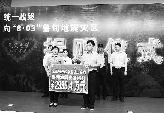 昭通鲁甸“8·03”地震发生后,云南省委统战部、省工商联、省光彩会迅速行动,第一时间投入到抢险救灾工作,第一时间组织开展昭通鲁甸“8·03”地震抗震救灾捐赠活动。