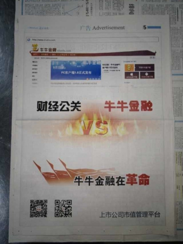 近日牛牛金融在多家平面媒体刊登了一整版广告,大力宣传新产品网站牛牛金融(),这一事件显示,传统媒介开始拓展到交易信息交互,以专业化咨询服务和丰富的交易资讯重新定位。