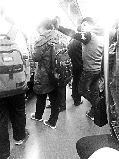 昨天下午5点30分左右记者乘坐地铁时的情形 摄影/实习记者 姜雅文