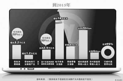 据工信部10月31日发布的数据显示,今年前三季度,我国信息消费规模达到1.9万亿元,同比增长18%,增速延续着良好的势头。国家统计局10月21日发布的数据显示,前三季度网上零售额同比增长49.9%。而商务部10月发布的数据则显示出文化领域消费的快速增长:1月~8月全国电影票房同比增长31%;1月~9月国内旅游收入增长14.6%。