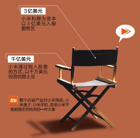 11月12日,刚刚上任的小米公司副总裁陈彤斥资千万美元投资优酷土豆,11月19日,小米和顺为资本以18亿元入股爱奇艺。