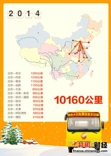 中新网12月26日电 年关将至,您还在为没有安排好的回家行程而忧虑吗?不用着急,由猎豹浏览器主办,百姓网协办的2015爱心橙色大巴“免费送老乡回家”活动将于2014年12月26日启动,公开向热心网友征集橙色大巴回家线路。