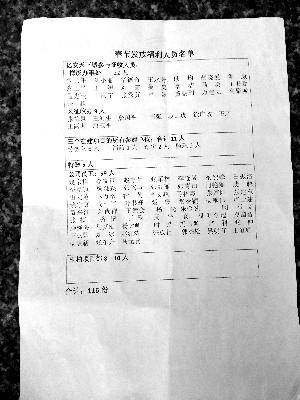 南阳市亿安房地产开发有限责任公司一间办公室里发现的“春节发放福利人员名单”