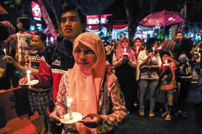 2014年12月31日,印尼泗水,民众点烛为亚航失事客机遇难乘客祈福。亚航空难,令廉价航空安全受到质疑。