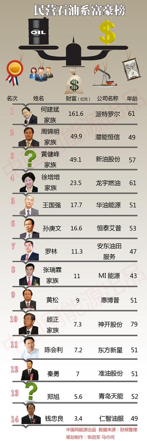 民营石油系富豪榜发布:首富身价达161亿(名单)