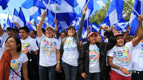 在开工仪式上欢呼的尼加拉瓜当地居民。(本网记者 任建民 摄)