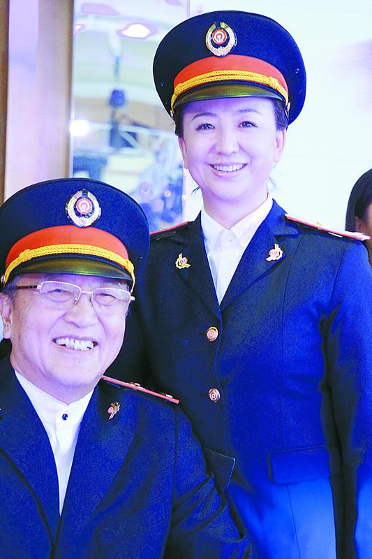 理事长柳传志(左)与秘书长程虹在2012年“商界春晚”道农会上“变身”列车长。