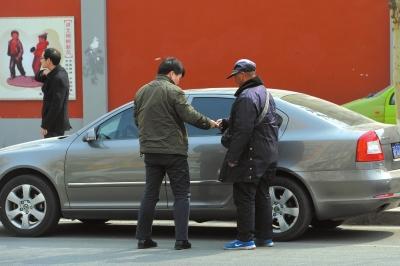 彰化路北侧,一名无证人员正在违规向车主收停车费。记者赵思衡摄