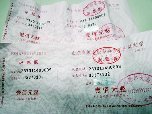“首先,发票上盖的是‘山东省地方税务局监制’的印章,但是这些发票代码却显示是济南市,两者信息对应不起来;再者,这张发票的纸质和正规发票的纸质也不一样。所以,肯定是假票。”济南市地税局的一位工作人员称。