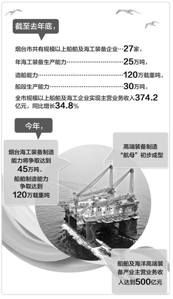 今年,烟台海工装备制造能力争取达到45万吨、船舶制造能力争取达到120万载重吨,船舶及海洋高端装备产业主营业务收入达到500亿元,高端装备制造“航母”初步成型。