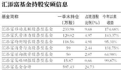 股价与业绩背离在A股并不罕见,但背离到如此程度,谁在背后推波助澜?一季报显示,安硕信息前十大流通股东全部为公募基金。值得注意的是,十大流通股东持有安硕信息925万股,占其流通股比例高达38.30%。