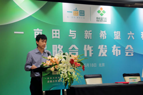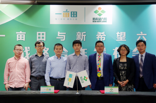 中新网5月18日电 5月18日下午,新希望六和股份有限公司(000876)与北京一人一亩田网络科技有限公司(以下简称一亩田集团)在京举行联合发布会,宣布达成战略合作。根据协议,双方将携手构建“互联网+产业链”的协作新模式,为传统食品生产企业的采购、生产和销售环节,插上互联网+的翅膀。
