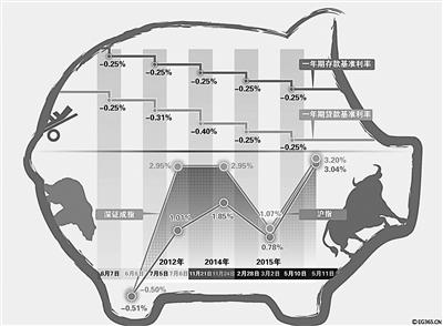 2014年以来,央行先后三次下调金融机构存贷款基准利率。其中,一年期贷款基准利率累计下调0.9个百分点至5.10%,一年期存款基准利率累计下调0.75个百分点至2.25%。此次降息后,一年期贷款基准利率下调0.25个百分点至4.85%,累计下降1.15%;一年期存款基准利率下调0.25个百分点至2%,累计下调1%。