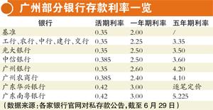 央行日前决定下调金融机构人民币存款基准利率。其中,金融机构一年期存款基准利率下调0.25个百分点至2%。记者调查发现,各家银行也随即调整存款利率,工农中建交五大国有银行步调一致,利率维持在较低位,广州市场上也有部分本土城商行将一年期定存利率上浮至1.5倍。