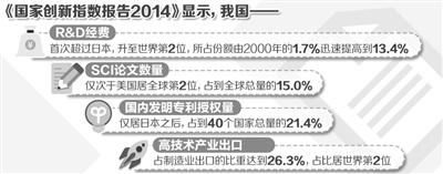 7月8日,中国科学技术发展战略研究院正式发布《国家创新指数报告2014》。作为国家创新调查制度相关工作的一部分,国家创新指数研究客观呈现了我国在世界创新格局中的地位和成绩。当前,我国创新领域发生了哪些喜人变化,又存在着哪些亟待破解的难题?《经济日报》记者就此采访了相关专家。