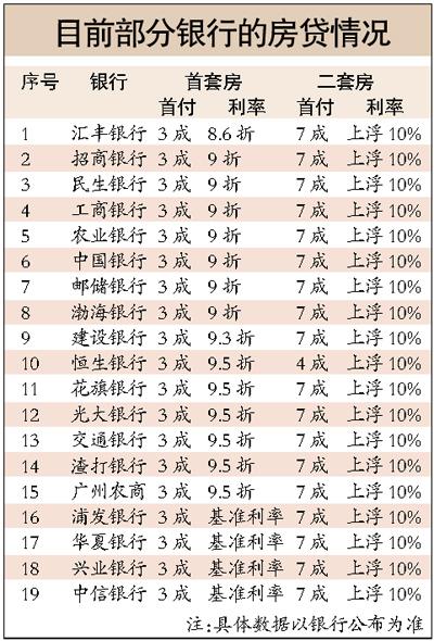 而其他银行方面,依旧没有完全执行二套房新政,记者调查发现,基本上其他的银行二套房贷的首付比例都依旧在七成,且利率上浮10%。