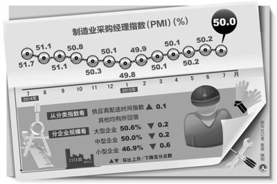 数据显示,7月份,PMI为50.0%,处于荣枯线临界点;非制造业商务活动指数为53.9%,连续两个月上升,持续高于临界点。