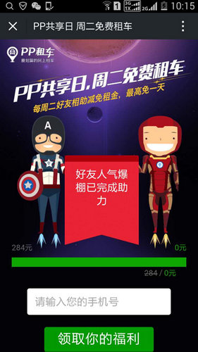 在每周的星期二,PP租车推出PP共享日免费租车活动,用户只需要在每周二通过PP租车平台下订单,并分享微信朋友圈或微信群,就可以邀请好友助力减免租金,甚至获得免费租车的机会。PP共享日的推出,让更多的用户通过传播“汽车共享”理念,深入了解汽车共享对于解决拥堵、盘活闲置资源等方面的作用,并获得免费租车的机会。