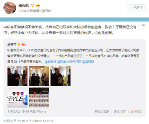 西单女孩创业获潘石屹点赞 颇爱派牙膏引领风潮