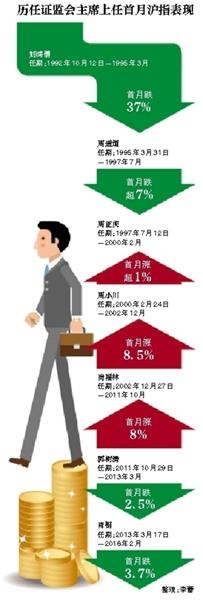 3位履新首日沪指下跌的证监会原主席包括尚福林、郭树清和肖钢。其中,肖钢接任证监会主席首个交易日,沪指跌幅达1.7%。