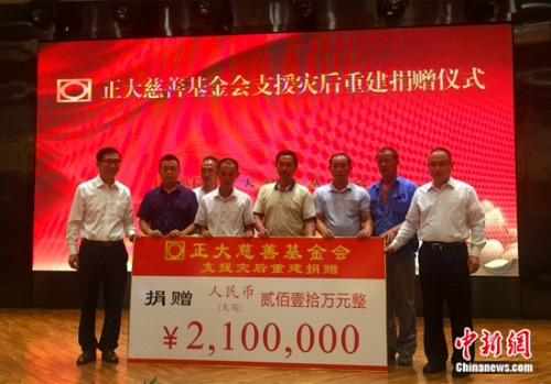 中新网8月16日电 13日,正大慈善基金会支援湖南湖北省灾后重建捐赠仪式在武汉潮漫凯瑞国际酒店举行。